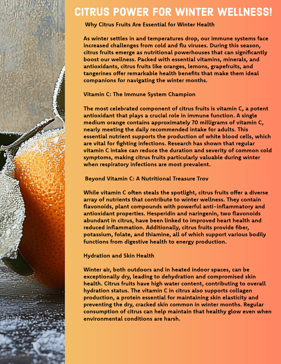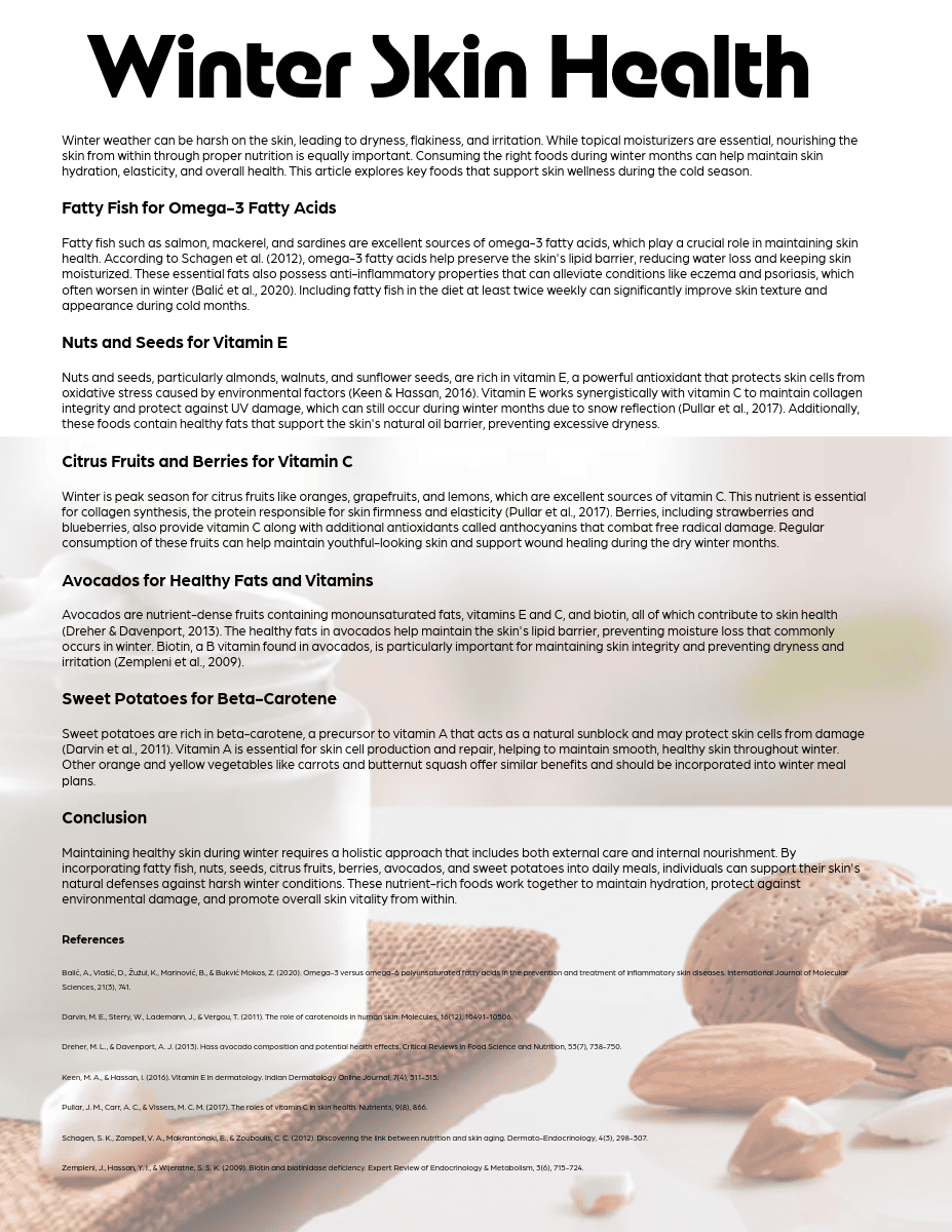 As we embrace the colder months of 2026, Make the Day Nutrition is here to guide you through a season of warmth, wellness, and wholesome eating. Winter brings its own unique set of nutritional opportunities and challenges, from the abundance of hearty root vegetables and citrus fruits to the shorter days that call for extra attention to our vitamin D levels and mental health.This season, we're exploring how to make the most of winter's natural bounty while addressing the specific health concerns that arise when temperatures drop. Whether you're looking to boost your immune system, maintain your energy levels during darker days, or simply find new ways to enjoy comfort food without compromising your health goals, our winter collection has something for everyone.Make the Day Nutrition believes that eating well should be accessible, enjoyable, and aligned with the natural rhythms of the seasons. This winter, let's embrace the nourishing foods that nature provides during these colder months and create healthy habits that will carry us confidently into the new year.