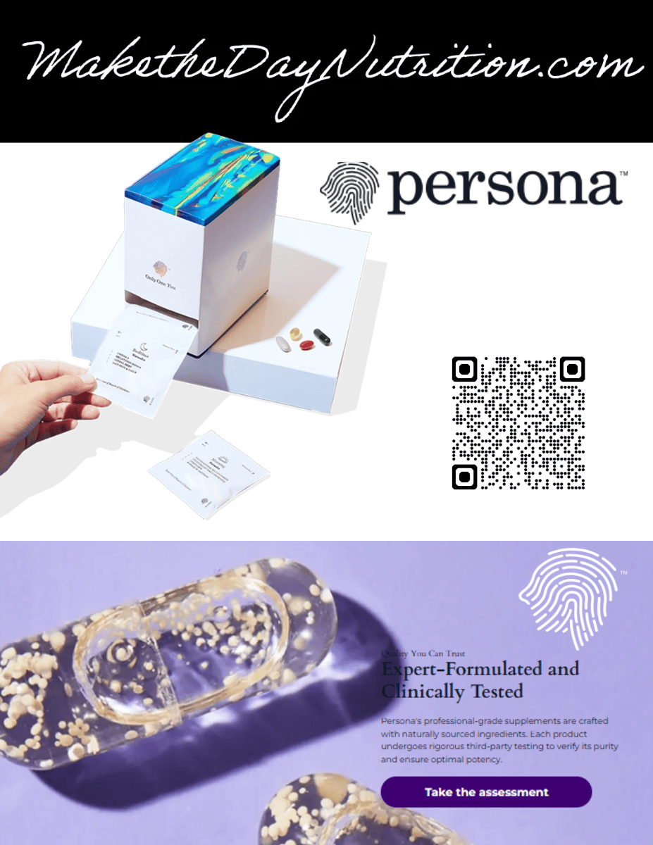 At Make the Day Nutrition, we believe your nutrition should be as personalized as your medical care. That's why we offer a custom supplement program from Persona Nutrition-developed with your provider to align with your treatment plan, address specific nutrient needs, and support clinical outcomes